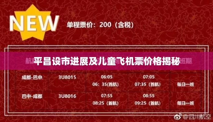 平昌县设市的最新消息与儿童飞机票价密切相关,随着地方发展的不断推进和航空市场的完善,将为当地居民出行带来更多便利和选择。