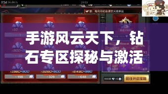 咱们重点聊聊钻石专区,钻石专区是手游风云天下中一个非常特殊的存在,这里有着丰富的资源、独特的玩法和珍贵的道具,对于手游爱好者来说,钻石专区无疑是一个充满诱惑的地方。